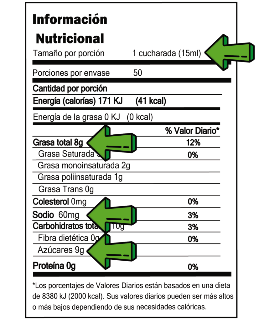 Ejemplo de tabla nutricional de un alimento